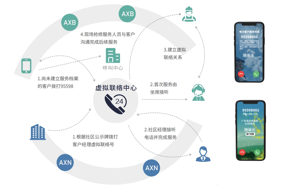 Ðé¹¹ÁªÏµÖÐÐļ´Í¨¹ý´î½¨Ðé¹¹ºÅÂëרÏߣ¬³ÉÁ¢×¨Êô³¡¾°£¨AXN1 £© ¼°Ëæ»ú³¡¾°£¨AXB2 £©·þÎñģʽ£¬Í¨¹ýÐé¹¹µç»°ºÅÂë¹ØÁª Íø¸ñ¾Àíµç»°¡¢·þÎñÈÈÏߣ¬È«Ê±¶Î½ÓÊܿͻ§À´µç£¬Áô´æ¿Í»§ËßÇóÈ«Á¿¼Í¼¡¢½»»¥È«³Ì¹ý³ÌÁôºÛ´Ó¶øÊµÏÖÈ«¹ý³Ì·þÎñµÄ¼à¶½ ¹Ü¿Ø£¬¹æ·¶·þÎñ×îºóÒ»¹«À³ÖÐøÌáÉý·þÎñÖÊÁ¿ºÍ·þÎñЧÄÜ¡£
