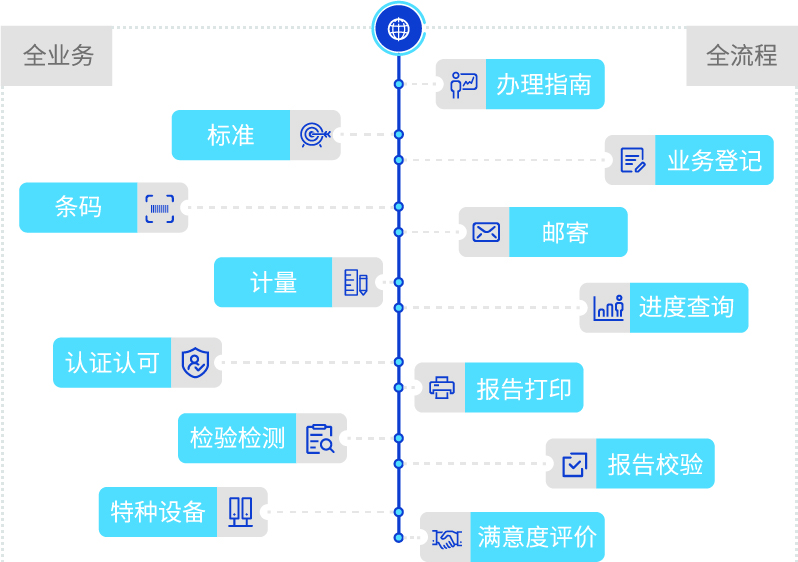 ͨ¹ý³ÉÁ¢ÒµÎñµÇ¼Ç¡¢Ô¤Ô¼·þÎñ¡¢½ø¶È²éÎÊ¡¢ÍøÉÏÊÕ·Ñ¡¢»ã±¨´òÓ¡¡¢ÎïÁ÷²éÎÊ¡¢ÖÐÒâ¶ÈÆÀ¼ÛµÈ¹¤×÷Á÷³Ì£¬ÊµÏÖ¼ÆÁ¿¡¢¼ìÑé¡¢ÌØÖÖÉ豸¡¢ÌõÂëÒµÎñµÄÈ«³ÌÍøÉϽâ¾ö£¬³ß¶È¡¢ÈÏÖ¤ÈϿɡ¢ÖªÊ¶²úȨµÈÒµÎñÍøÉÏת½Ó½â¾ö£¬Âú×ãÆóÒµ±ã½Ý¸ßЧµÄ·þÎñÐèÒª¡£