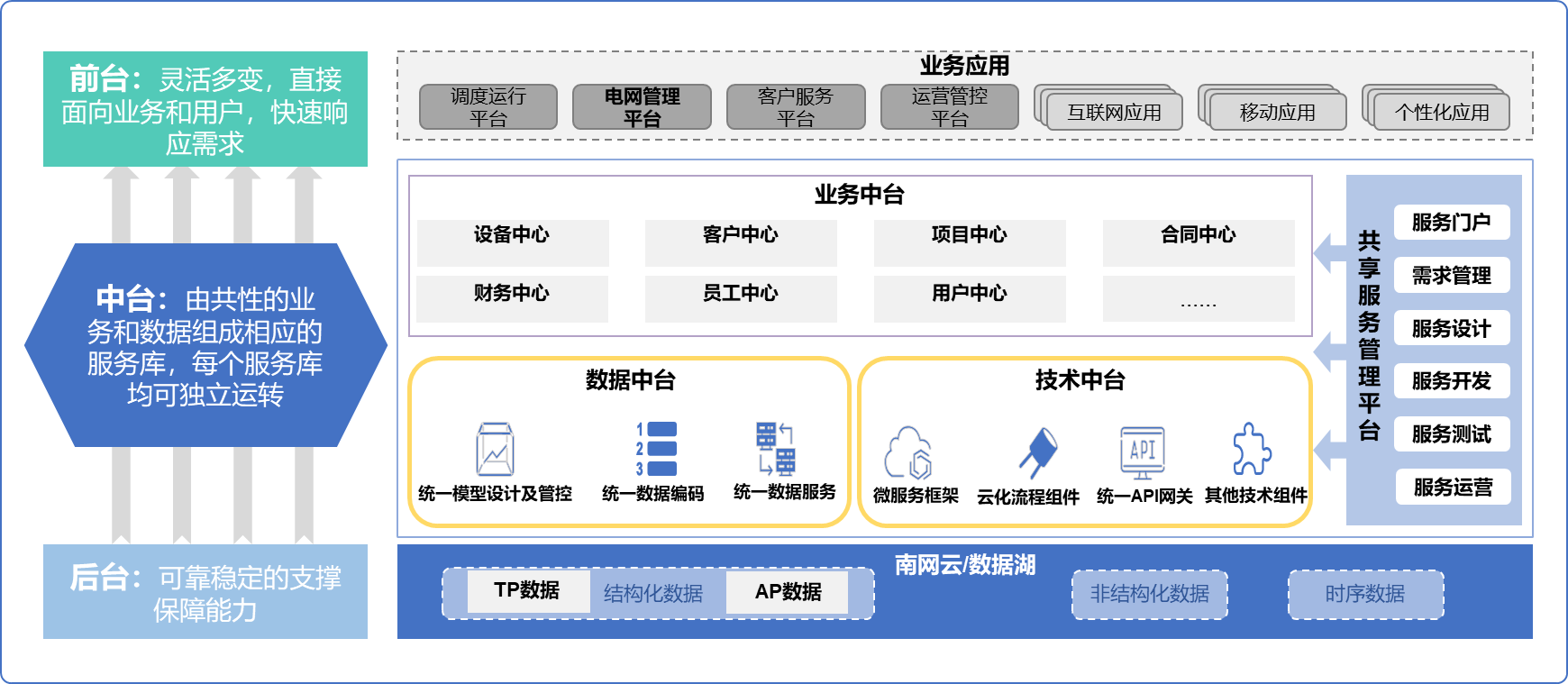 “ͨ¹ý½«¶à±äµÄǰ̨Óë¹²ÐÔµÄÖÐ̨¡¢ÎÈÖØµÄºó¶Ü½øÐнâñî £¬´òÔì³ÖÐøÑݽøµÄÆóÒµ¼¶ÒµÎñÄÜÁ¦¡¢Êý¾Ý¹²Ïí·þÎñÄÜÁ¦¡¢Í¨Óü¼ÊõÄÜÁ¦Æ½Ì¨ £¬È·±£¸÷ÒµÎñǰ̨ÀûÓü±¾ç¹¹½¨ºÍµü´ú ¡£